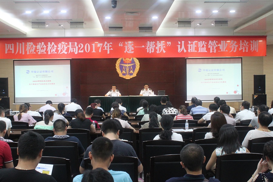 2017年6月29日,应四川检验检疫局邀请,华鉴认证有限公司领导参加了四川检验检疫局2017年“逐一帮扶”认证监管业务培训工作,本次培训参会领导有:四川省检验检疫局邓明辉副局长、认证建管处杨诚处长、重庆、云南、贵州、青海、西藏等省局认证监管处领导,以及:四川省出口食品备案企业代表共200余人。培训会上,华鉴认证..进行了:HACCP管理体系及原理、出口食品生产企业安全卫生要求、“同线同标同质”三同要求专题培训,参会人员普遍反映收获颇丰,受益匪浅。