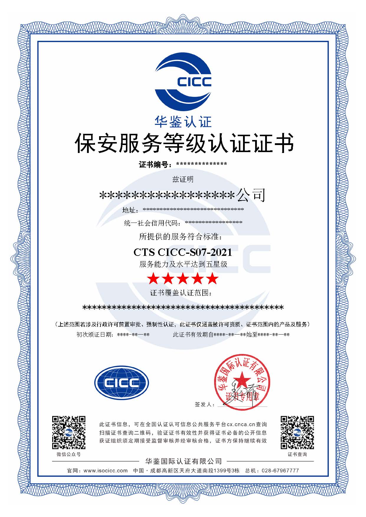 保安服务等级认证证书