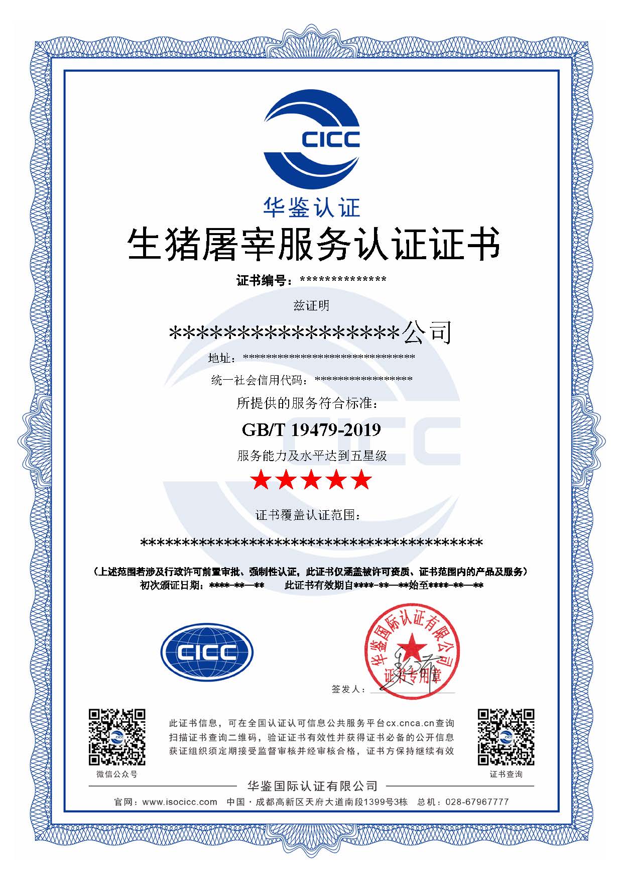 生猪屠宰服务认证证书