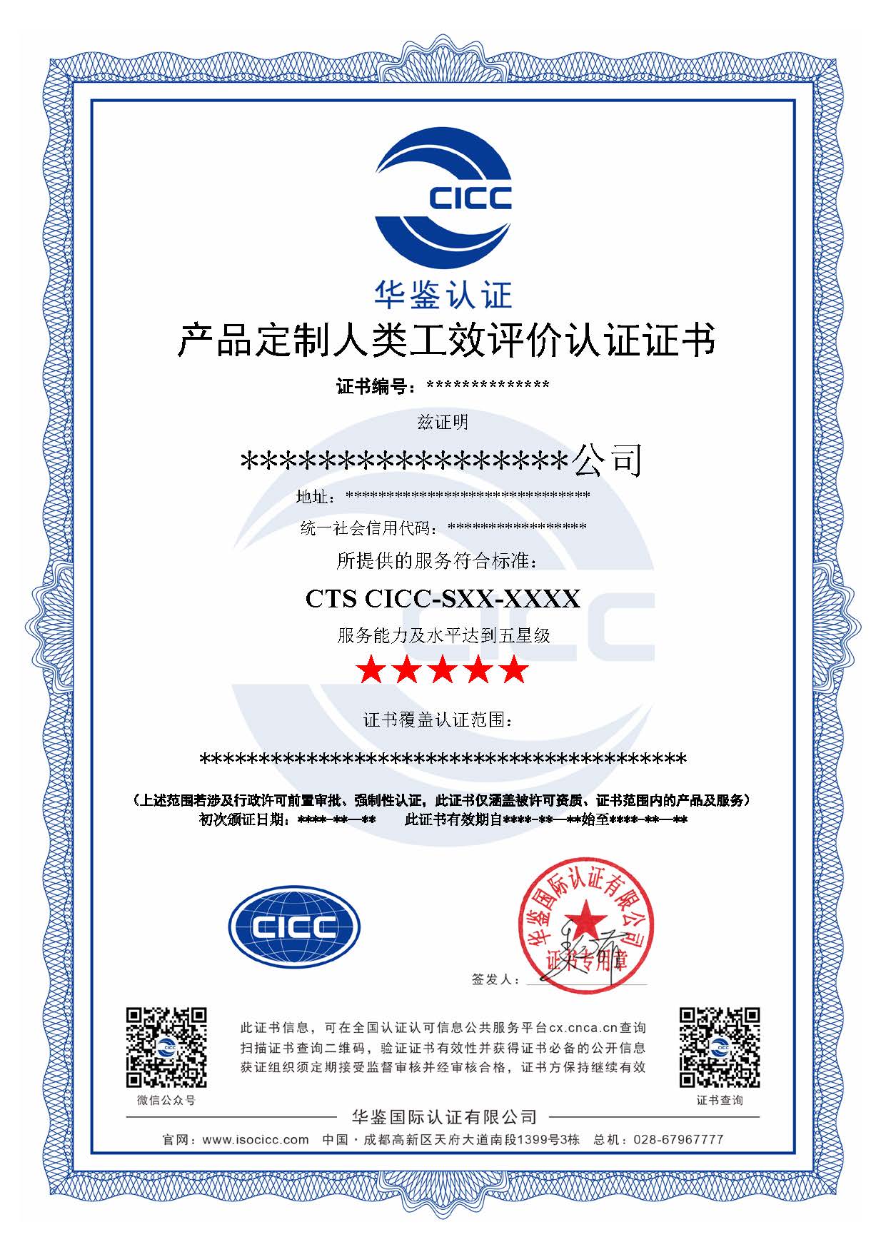 企业质量安全信用等级评价认证 CTS CICC-S05