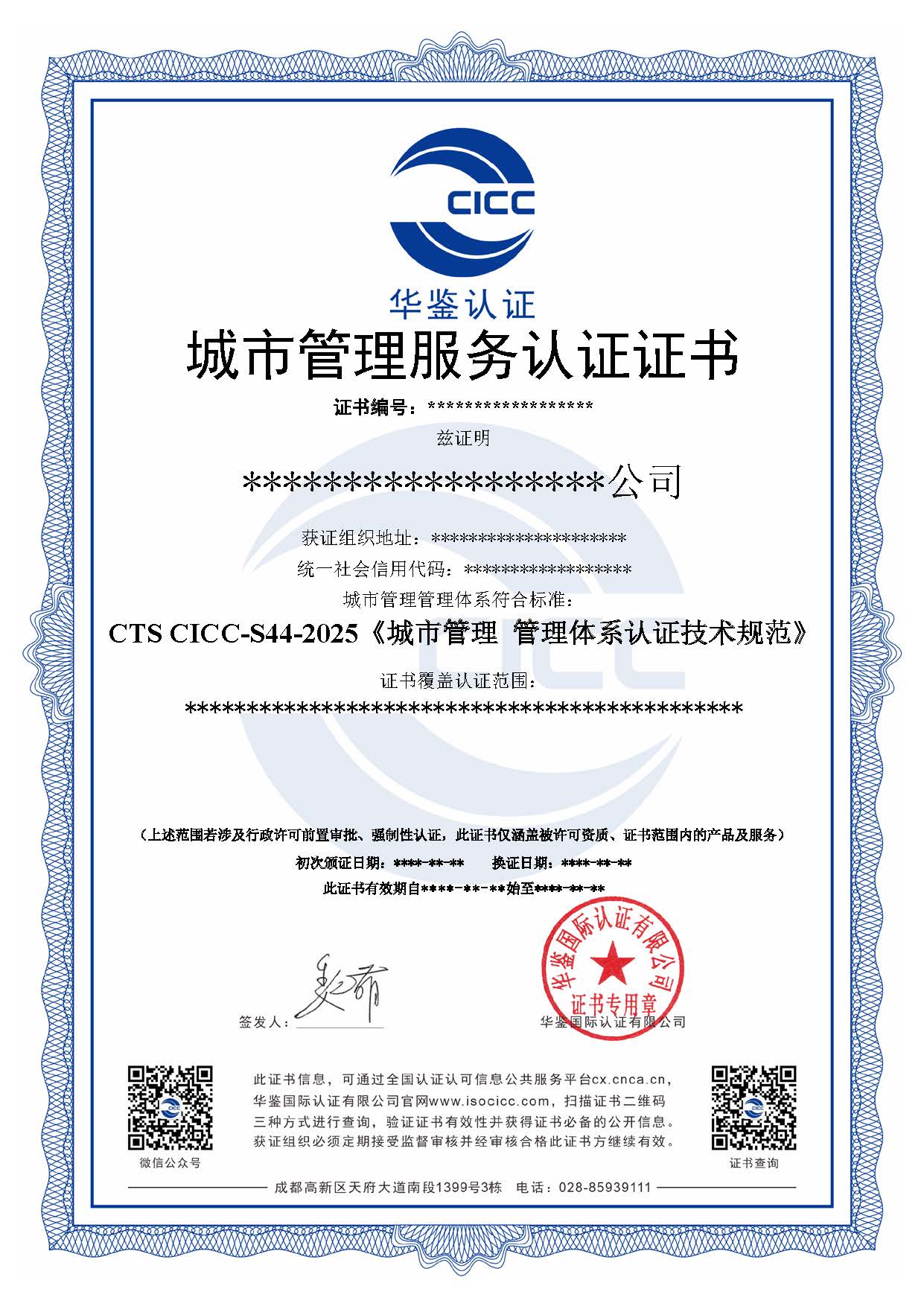 CTS CICC-S44城市管理服务认证